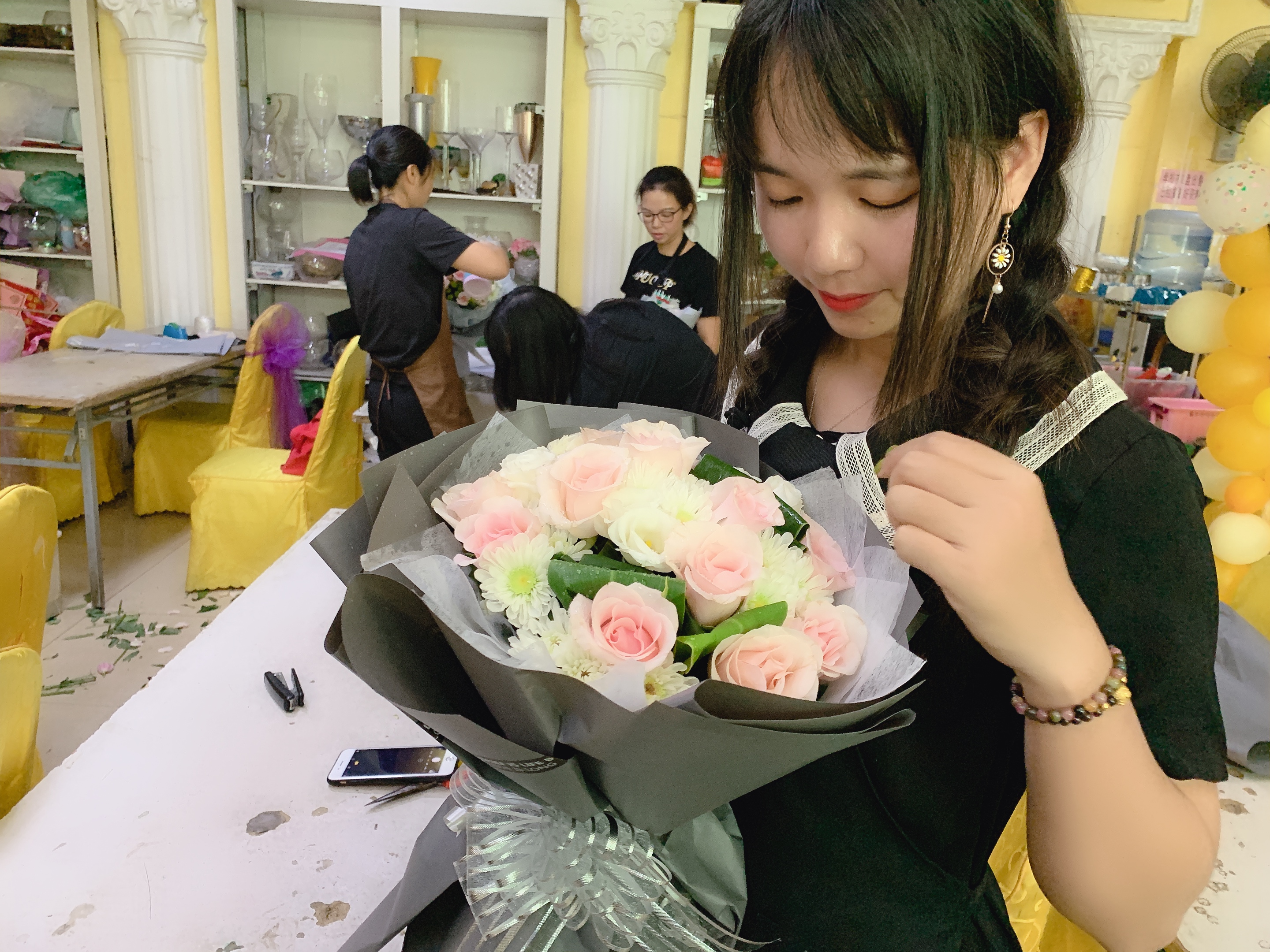 5. 学校门市部能提供代办发货,代客设计花艺,全方位协助学员开店创业。我校婚庆策划门市部常年承接社会上各项婚礼庆典服务,可为学员提供现场布置实习机会,让学员在实践中提高操作能力,增长见识