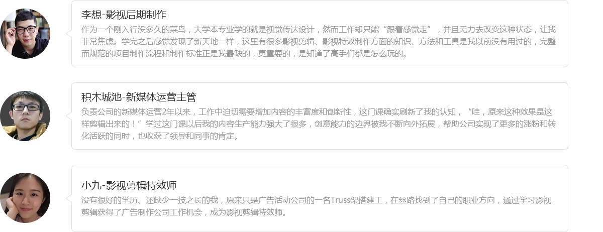 影视后期剪辑大师班的简介:高校影视教育专业集中于表演、导演和编剧专业,有能力培养影视剪辑人才的高校每年仅能为市场输送几百名人才。市场需求和产业能力的背离,正是热爱影视行业的你的机会,跟随行业快速发展,你将是熠熠生辉的新星。
