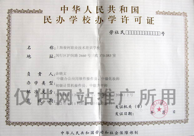 设有化妆培训、盘发培训、美甲培训、韩式半永久培训、摄影摄像培训等多门专业课程,是上海地区规模较大的美容化妆培训学校之一。学校师资力量雄厚,教学秉承国际间最新的时尚美学,专长于彩妆、美甲及整体形象设计领域,特聘从事教育事业多年的名师,更有多名资深背景名师定期来校专题讲座,理论与实践相结合,掌握服务、销售、管理的基本知识和技巧。我校校风严谨,硬件一流,力争使来我校参加专业学习的学子得到最好的学习环境、最新的美学知识。【上海俊柯职业技术培训学校】 由上海市劳动局及民政局批准成立,具备合法办学资质。学校近年还新开设摄影摄像、PS美工培训课程。