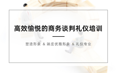 长沙《高效愉悦的商务谈判礼仪》企业内训课程有:商务交谈的礼仪——诚恳、幽默、委婉、守信、灵活、和谐,日常商务交谈中的礼节、商务谈判中应把握的基本原则、谈判协议中的语言、签约仪式上的礼仪等