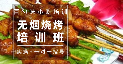 培训猪肉、羊肉、牛肉、鱼肉等其它肉类烧烤原料的加工处理和腌制方法、培训花样蔬菜串类烧烤原料的处理和制作方法、培训鲜鱼、大虾类烧烤原料的处理 | 培训花样水果串的制作和处理方法、培训各种原料在碳烤炉上的烤制方法与技巧,培训无烟烧烤技术、培训调味盐、调味油配方与技术 | 培训烤肉类风味粉和风味酱制作技术、培训烤蔬菜类风味粉和风味酱制作技术、培训烤水果类风味粉和风味酱制作技术 |
