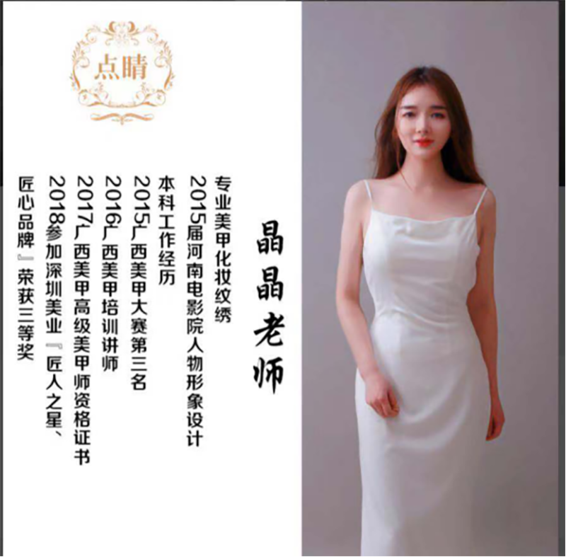 点睛美业是国际美妆名师协会会长单位,秉承严谨治学,利他为先,众人分享的企业理念,专注于美妆领域专业人才的培养和创业扶持。点睛美业目前在深圳地区开设有5个店铺,目前拥有10个工作室及2家机构,设施齐全,环境优美,目前资深美妆师30名,高级纹绣师25名,整形美容6名,皮肤美容3名,健康顾问5名,高级美容顾问8名等数十位专业名师,曾多次获得IFBC首尔美容艺术大赛等各类国际化妆比赛最 高奖项。