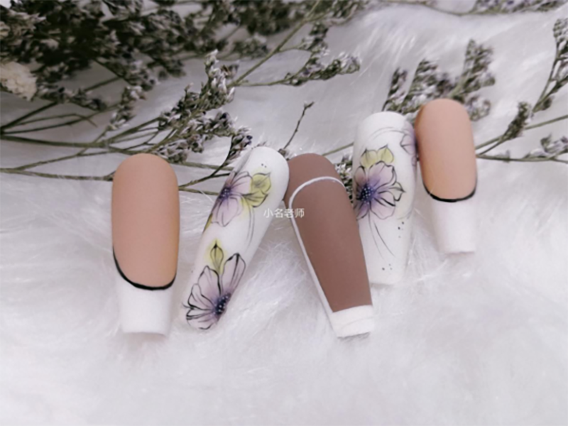 新产品工具介绍、工具材料的准备、手绘工具材料的介绍和使用方法、色彩的重要性、概念及色彩不同的分类方式、色彩混合、色彩的搭配、色调的组织及调和原理、初级彩绘知识、手绘的技能技巧、点、线、面、各种花瓣、图腾、色块、线条的应用、整体彩绘组合。中级彩绘各种花型的绘制、色彩的重要性概念及色彩分类混合构图种类、色彩元素运用要诀、图案与甲片的结合、情景写意彩绘、各中色彩的晕染过色技巧及颜料底色的制作、花卉白描笔法理论简介;白描底图工艺拷贝技法;色彩搭配、过色、晕染、平涂技巧;白描花卉技法;淡彩、重彩晕染技法;高级彩绘的3D创意手绘花卉、植物的彩绘技巧、基本手法及10种花型的绘制(玫瑰、牡丹、荷花、百合、三色堇等)