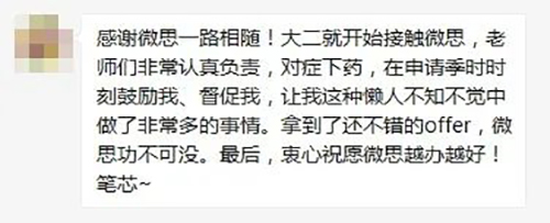 微思同时也为优秀学员们提供保研服务,包括夏令营申请,预推免以及推免等三个模块的辅导,我们将为学员提供精准的规划定位,专业的文书撰写以仔细的网申服务和合适的软背景提升。