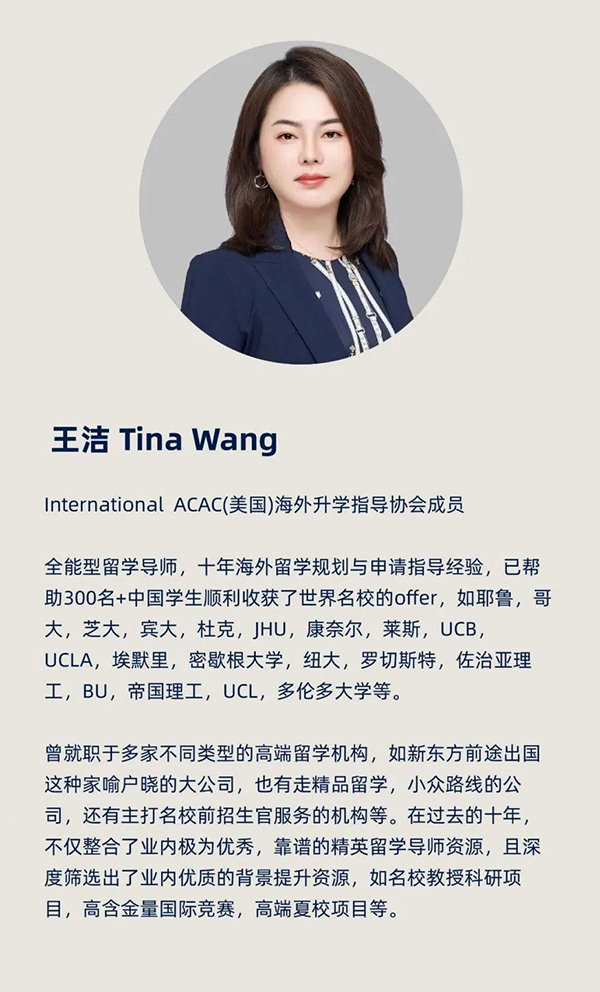 导师毕业于国内外名校,平均工作经验8年+,已积累了大量的名校成功案例,留学规划,申请和文书经验极为丰富,专业知识.扎实,业务水平高,且敬业,靠谱。
