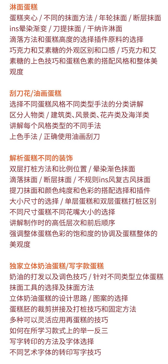 拥有一直经验丰富的教师团队、他们具有深厚的专业知识和丰富的实践经验、教师们不仅能够循序渐进的教授烘焙制作的基本技巧,还能够分享他们的实践经验和行业内的全新趋势,通过与这些专业老师的互动,学员能够获得更深入的学习体验,更好的掌握西点制作的技巧和艺术