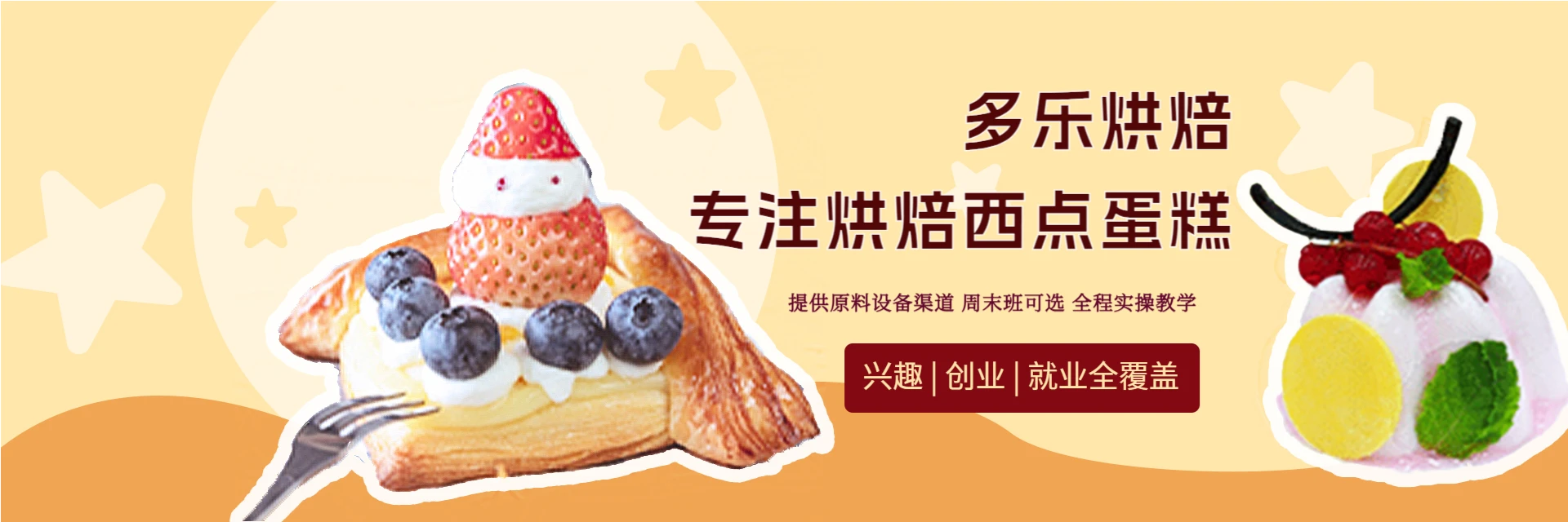 多乐烘焙2005年成立,专注DIY实操、面包坊、烘焙坊及西点裱花教学,拥有多年开店经验。实行小班授课模式,确保0基础学员真正掌握烘焙知识。主打烘焙、西点、蛋糕培训,面向兴趣爱好者与创业就业者。课程支持一人一机操作,涵盖大小不同设备;学完可留店练习,提供原材料与设备进货渠道,后期配方免费更新。开设周末班,并可根据学员时间灵活调整上课安排。