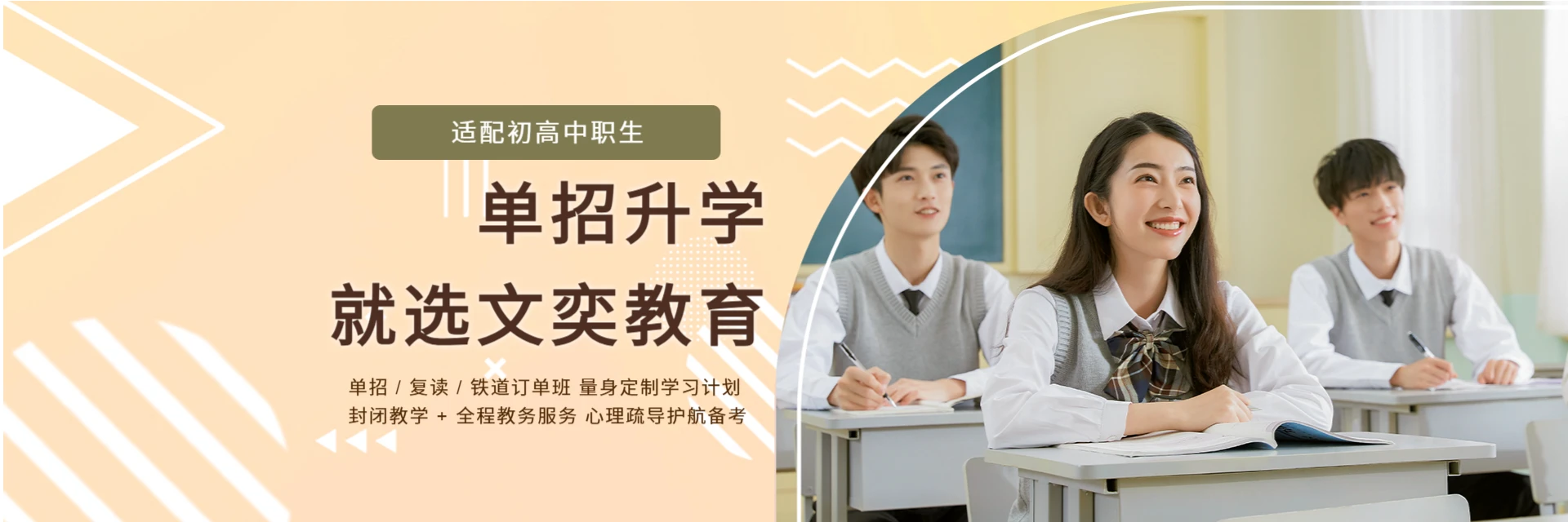 文奕教育培训总部位于长沙,是一家针对于'单招考试'、'对口升学复读'开展教育服务的综合性教育科技有限公司。响应国家新时代教育培训政策,面向中职生、普高毕业生及往届毕业生提供单招与复读培训。为学生提供全面化、系统化的学习规划和报考综合建议,致力于打造高质量、高服务、高水平的教育培训机构。