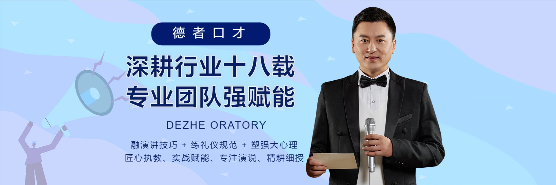 佛山德者口才训练中心成立于2007年,专注演讲辅导、自信当众讲话、青少年口才、主持人培训、普通话提升、口吃矫正、公务员面试答辩等。在佛山、东莞、中山、广州、惠州及广西南宁等地开设训练机构。以专注、务实、有效的方法,用追求完美的工匠精神打造精品课程,旨在提高口头表达和演讲能力,是目前国内性价比和回报率很高的训练机构之一。