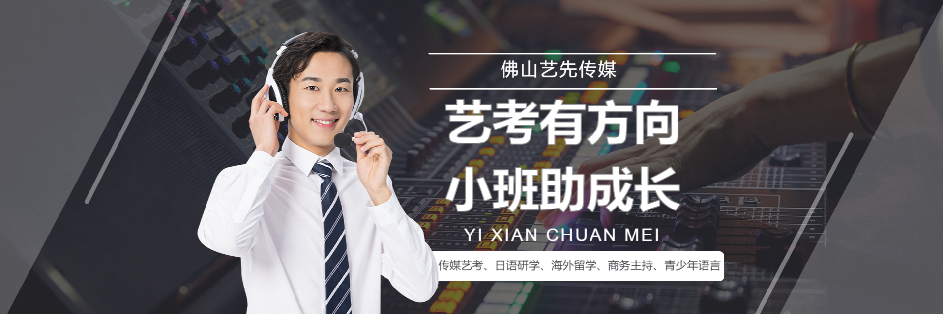 广州艺先传媒教育始建于2012年,是华南地区高端定制艺术教育连锁品牌,总部位于广州,已开设佛山、东莞、江门等七大省内及北京、石家庄、四川绵阳三大省外分校区。主营传媒艺考、日语研学、海外留学、商务主持配音与礼仪培训、青少年语言表演培训。秉承“欲立艺,先立人”理念和“教学为王”方针,坚持小班教学及教研教材自主研发,为国内知名院校及海外优质学府输送众多优秀人才。