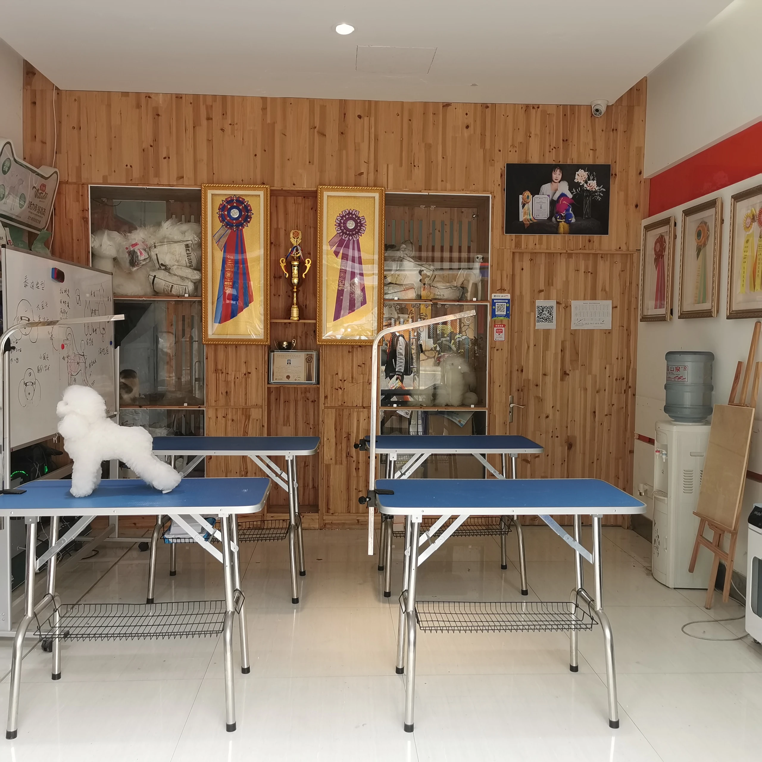 开设贵宾、比熊、雪纳瑞、可卡等单犬种赛级造型课程,覆盖喷胶、扎辫、拔毛等赛场核心技术
