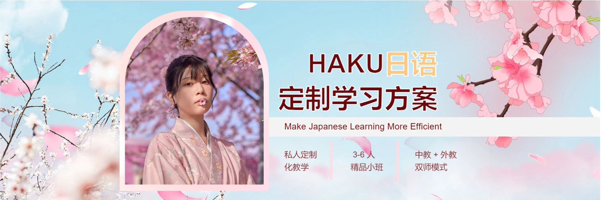 杭州和语文化传播有限公司旗下品牌HAKU日语,成立于2010年,现有中教老师10名、外籍老师8名,累计培养学生1800余名。采用私人定制化3-6人小班教学,摒弃大课堂满堂灌模式,助学员深入掌握日语精髓。中教授课立足中文母语者视角,结合母语对比讲解语法与句型;外教课堂拓展延伸知识,强化日语会话实践与交流能力。